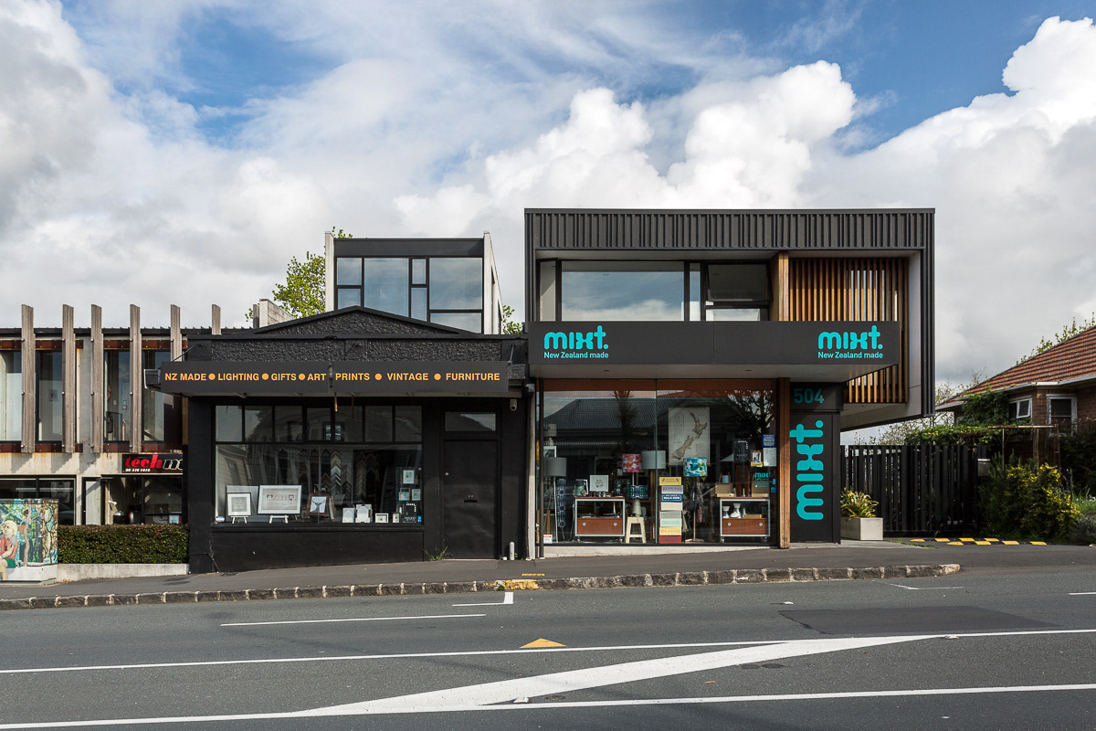 mixed use, residential and commercial development, auckland, new zealand featured TVNZ "art of the architect" episode one Sitting at the end of the Kingsland commercial & hospitality strip, this project is a mixed use development consisting of a four bedroom apartment, a one bedroom apartment, two retail tenancies, an eight car garage and a basement workshop. Providing the owner a large home, with views to Eden Park, plenty of parking for his classic car collection and multiple revenue streams.