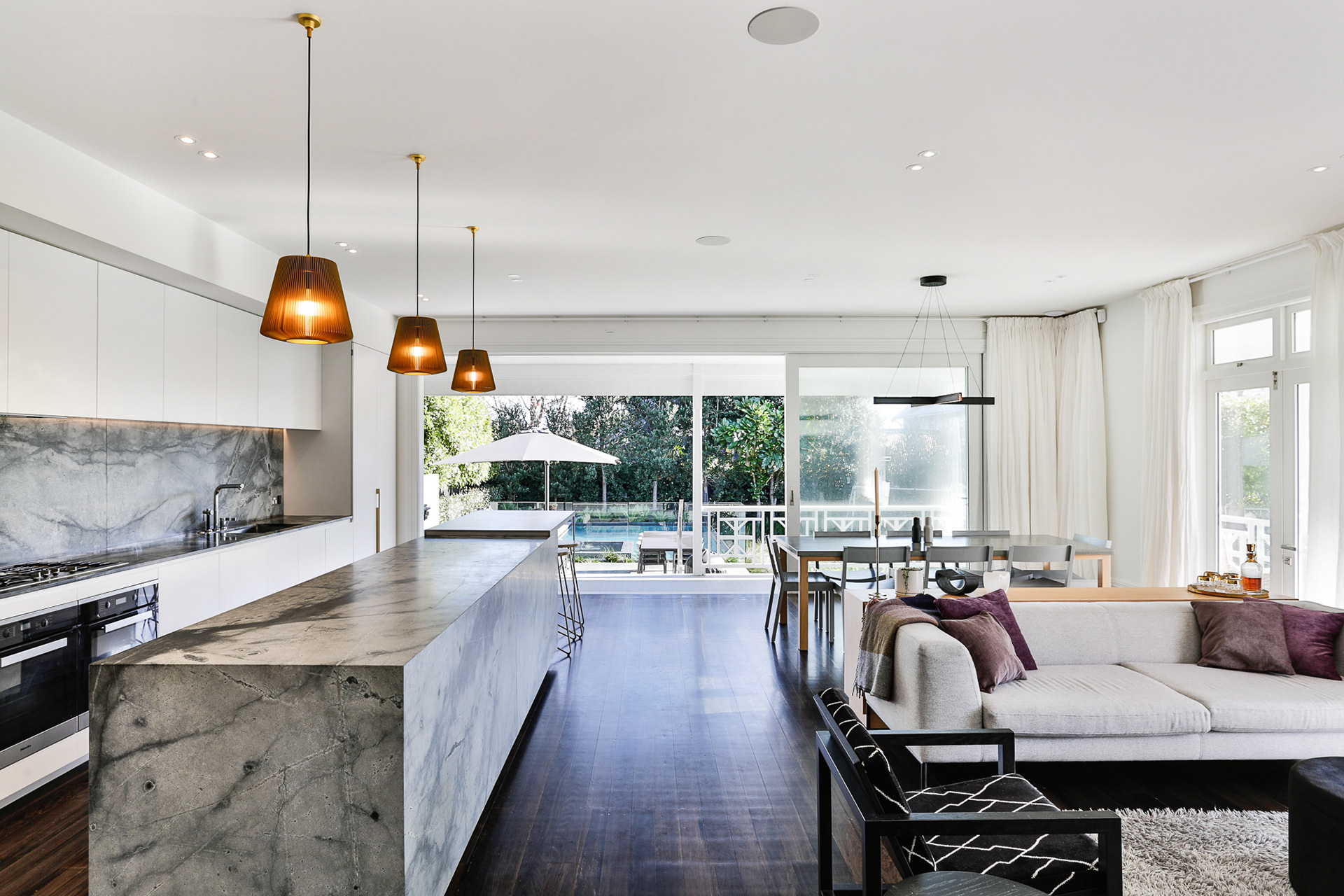 villa renovation, auckland, new zealand TIDA new zealand architect renovation of the year 2018 This villa renovation was an exercise in the integration and blending of the old and the new. With the front half of the existing house, comprising of bedrooms and a large family room, renovated to retain the texture and history of the existing villa. And the rear of the home being rebuilt to provide a large modern living, kitchen dining area, with attached scullery and laundry. Moving the garage to under the existing house also allowed the rear garden of the site to be opened up for a terrace, pool and large lawn area.