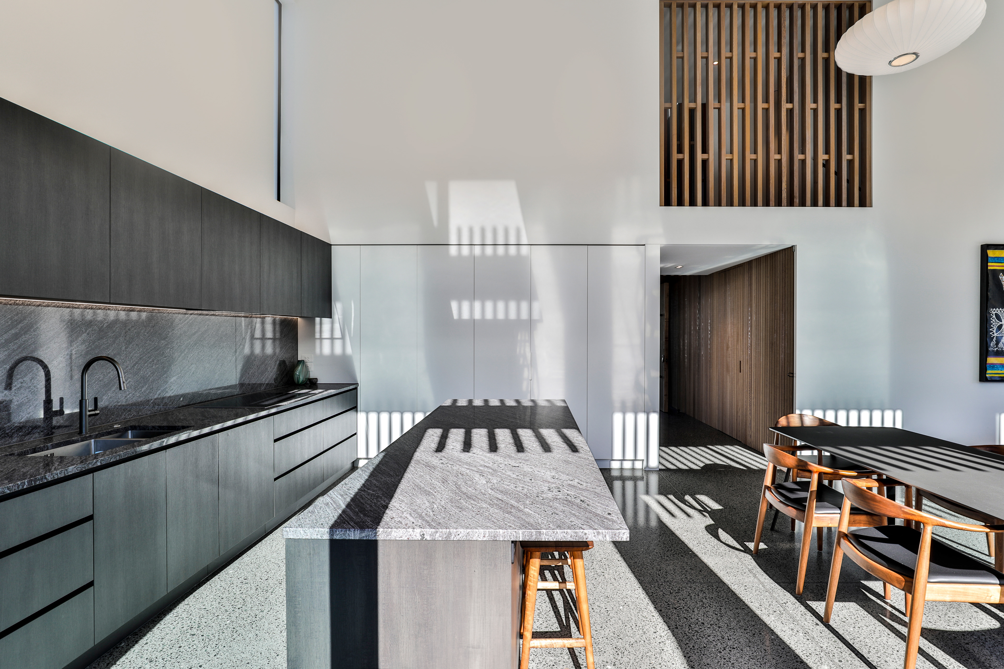 new house, sandringham, auckland, new zealand the project is a study on Infill housing, in the city fringe suburb of sandringham. with an economic square footprint, providing 180m2 of internal floor area, including a double height living area, 2 bedrooms, a large studio space, two bathrooms and a single lock up garage. an intentional simple form and facade, does not dominate the sites existing villa.